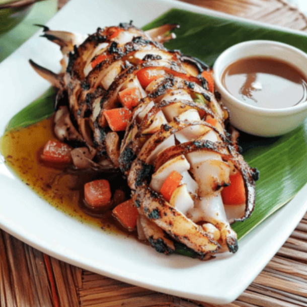 Choice cut of Yellow Fin Jaw grilled to perfection with home made Pickled papaya & Iloko sauce